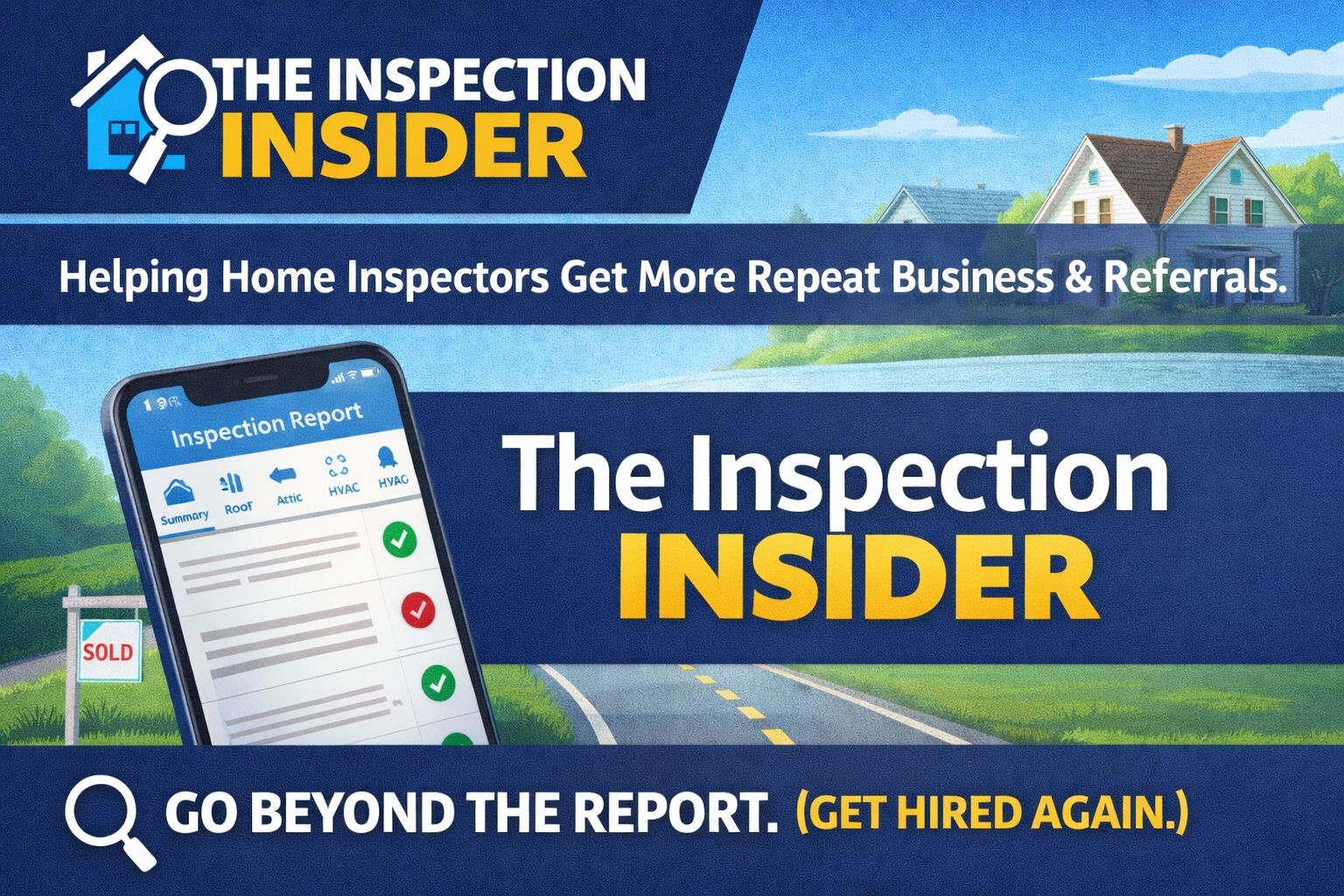 Disclaimer: The content in The Inspection Insider is provided for general informational and educational purposes only. It is not legal, financial, professional, engineering, or safety advice, and it is not a substitute for professional judgment. Inspection practices, requirements, and standards vary by location and association—always follow your local laws/regulations, standards of practice, and manufacturer documentation. Any examples, scripts, or suggestions should be adapted to your business and used at your discretion.