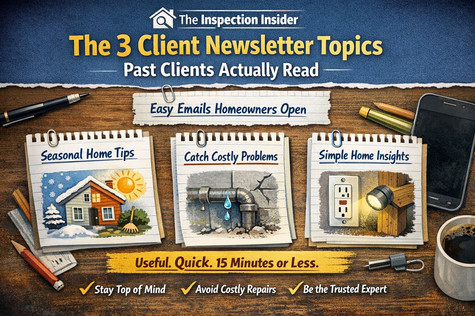 Seriously. It is one of the easiest content banks you already have. One good photo from a past inspection can turn a into multiple simple newsletter ideas.